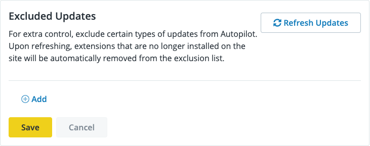 Click Manage Excluded Updates then the Exclude button on the element's row to exclude it from Autopilot updates.