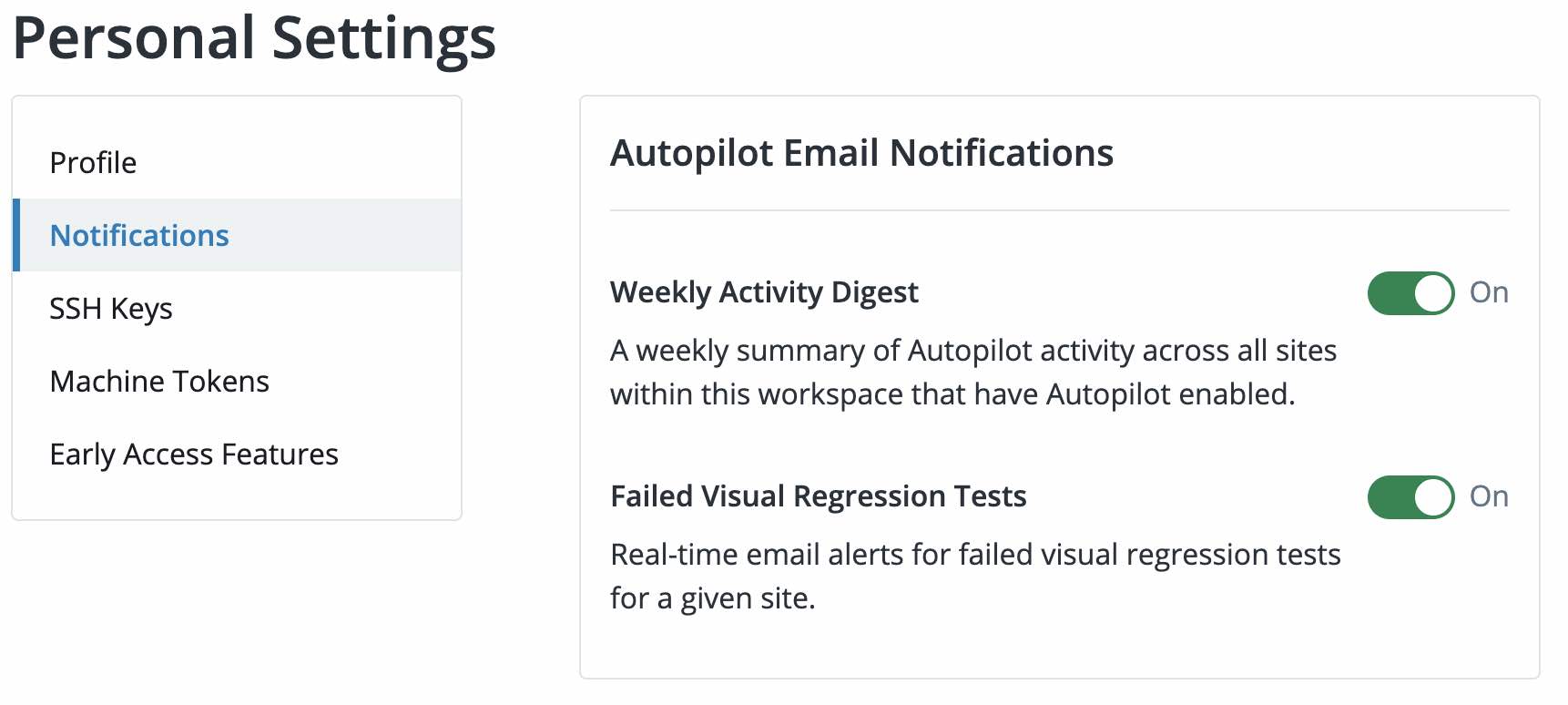 Configure email notifications for Autopilot alerts and activity digests in your Personal Workspace settings: