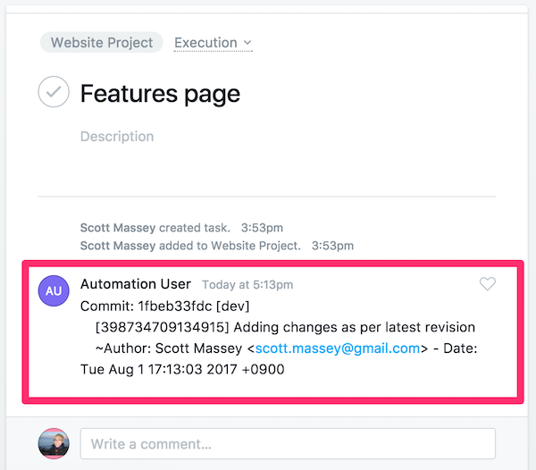 Return to the issue in Asana to see a message from our machine user:
