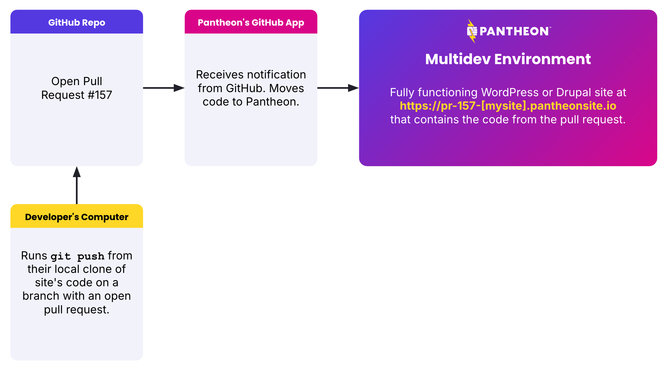 Similar to our recently released Action, this GitHub Application also moves code to Pantheon Multidev environments and the Dev environment to correspond to changes made to a repo on GitHub.